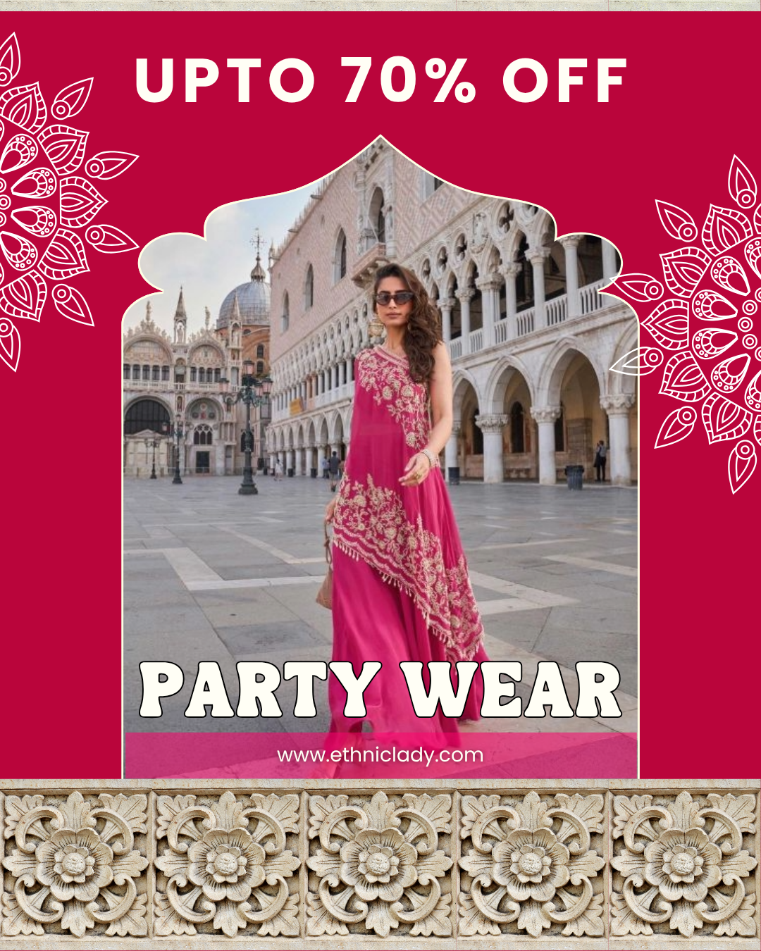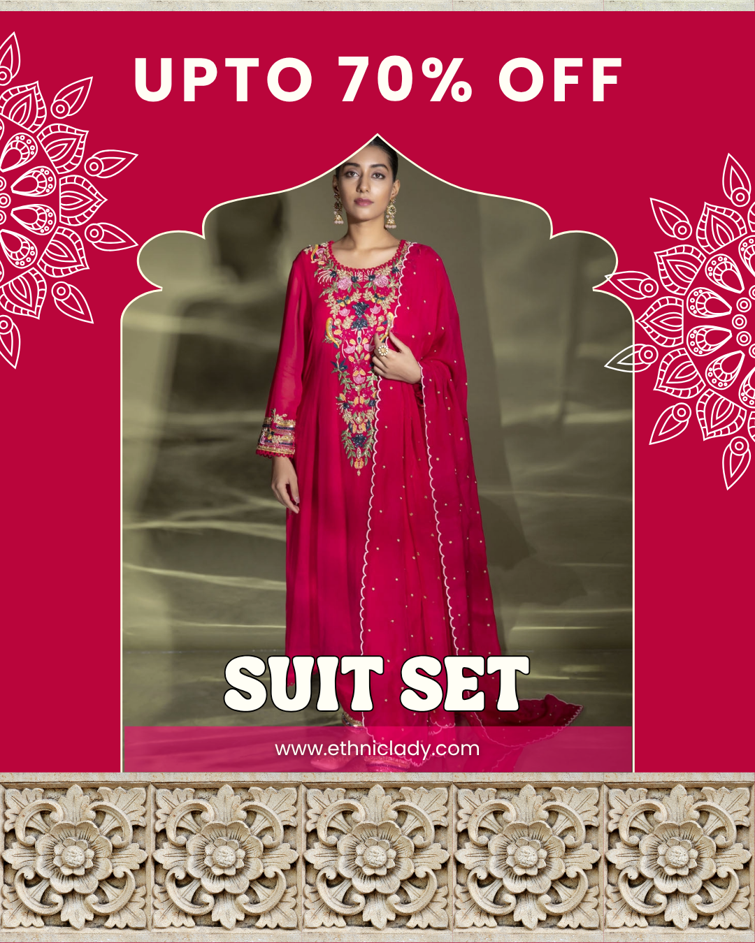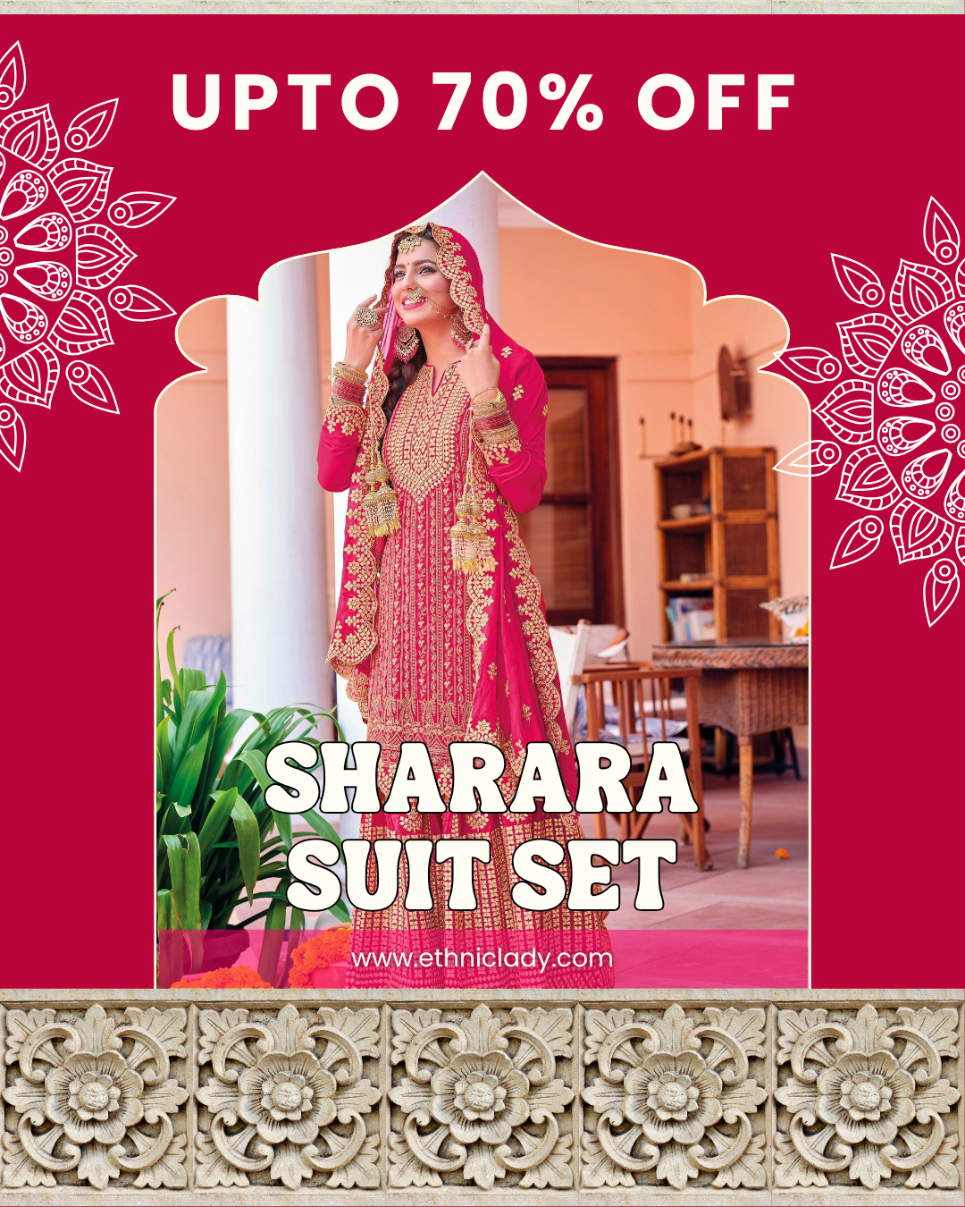 Ethnic Lady ™ Chinon Fabric with Heavy Embroidery work 3 Pcs Plazzo Suit Set